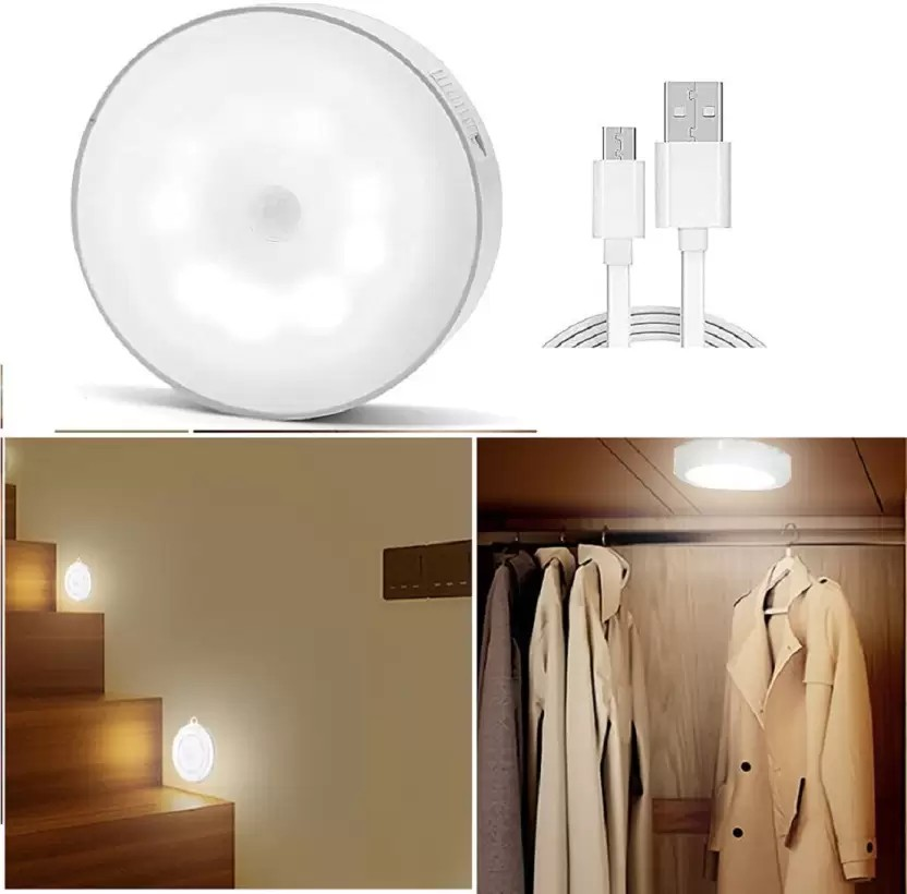 USB CHARGING + LONG LIFE: Different with traditional battery night light, our sensor lights have built-in 700mAh lithium rechargeable battery. 2 hours required for fully charged and running for 4-6 hours continuously. | ENERGY-EFFICIENT: motion sensor lights automatically turn on when motion is detected within a 7-10 ft. range, automatically powers off after 15-20 seconds of inactivity, this sensor light will lighting your path as you cross and shutting off soon after. Up to 60 lumens output, 8 bright LED beads inside, saving energy. | EASY INSTALLATION: Simple to install, no hard-wiring. With double-sided adhesive pads and built-in magnet, you can stick the LED lights anywhere you like. Please do not install this light in high temperature place or somewhere with dust, otherwise, the adhesive strip will be affected, and then the light will slide easily. | WIDELY USED: This rechargeable night light works great for bedroom, hallway, washroom, kitchen, wardrobe, corridor, stairs, dark closets, shelf, stairs or cabinets. | IMPORTATNT NOTE: Motion Sensor Light can only be turned on in darkness environment. It won’t turn on if enough light has been detected by the light sensor.